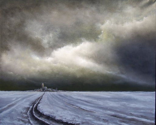Jan Mostert (1985, autodidact) laat zich in zijn werken steeds meeslepen door de uitgestrektheid van Noord Nederland.